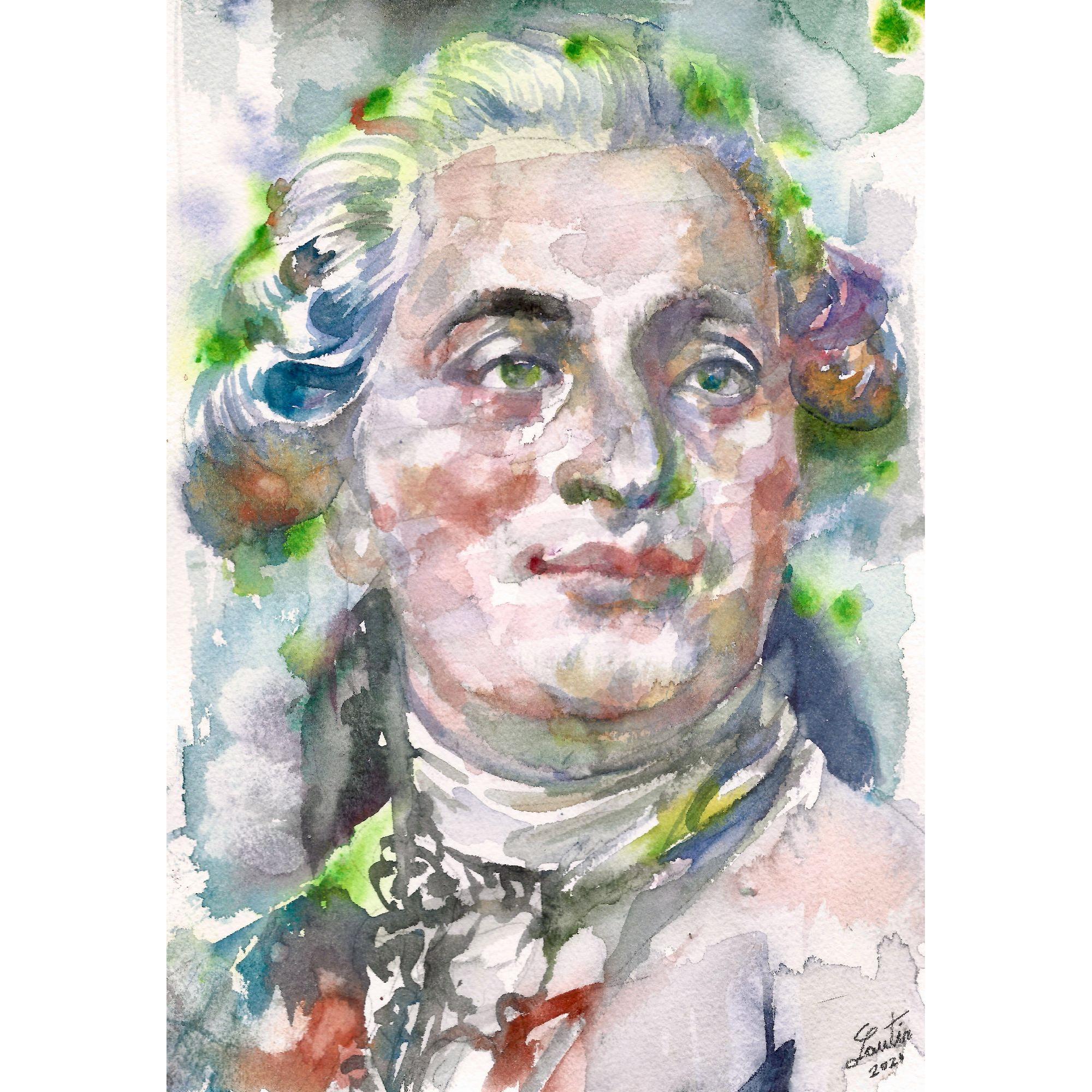 Questo è un ritratto ad acquerello di LUIGI XVI, Re di Francia. La firma e la data dell'artista (LAUTIR 2021) si trovano in basso a destra.