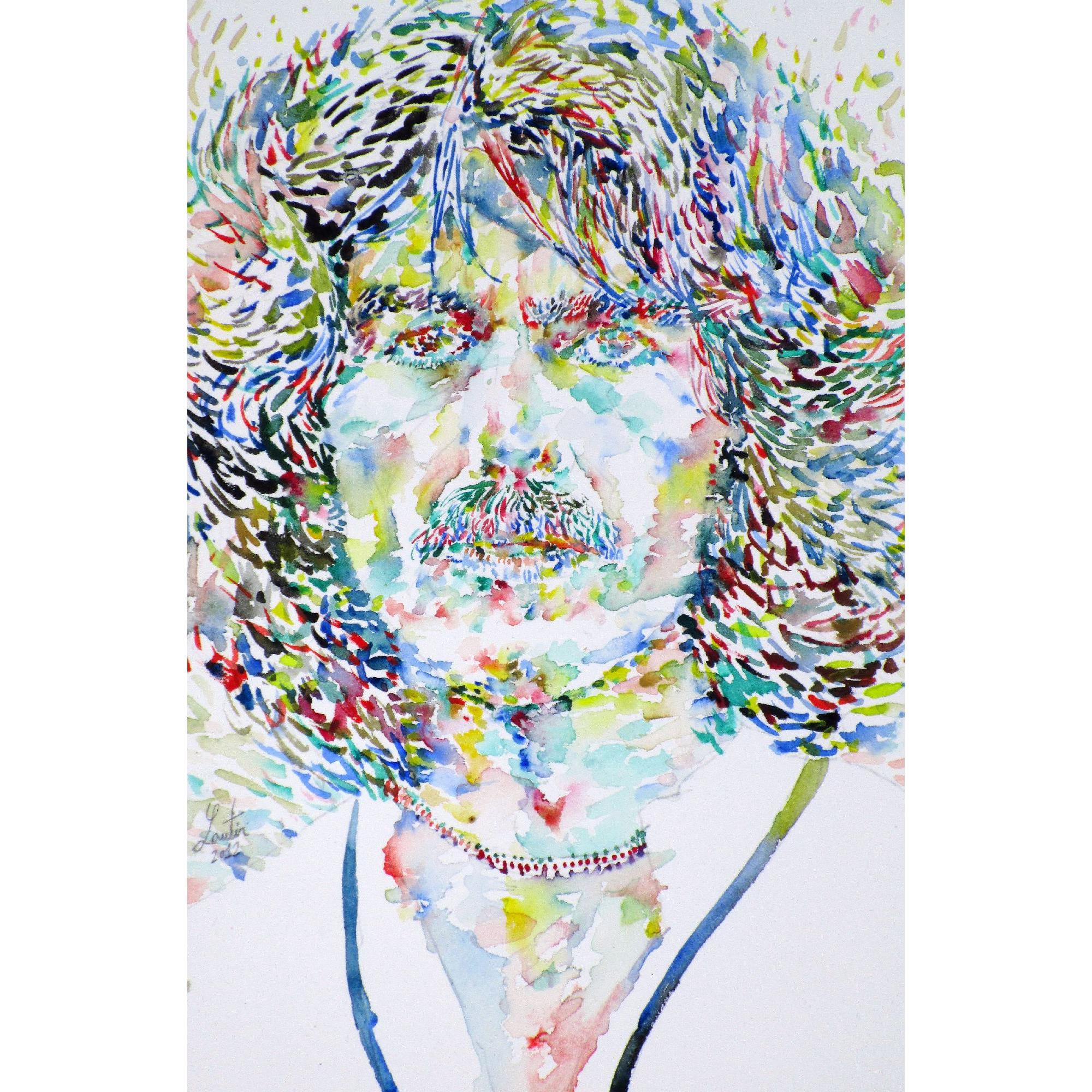 Le delicate pennellate di acquerello su carta creano una somiglianza accattivante, perfetta per qualsiasi appassionato di musica o collezionista di ritratti. L'opera immortala un'icona amata, resa con sensibilità e maestria.