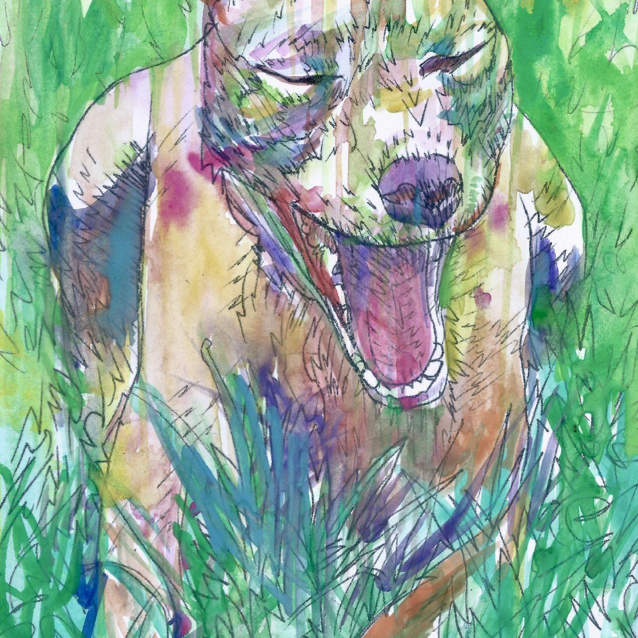 PIT BULL CHE SBADIGLIA NEL GIARDINO